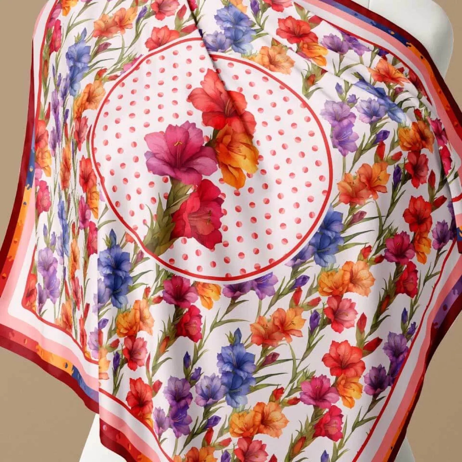 The Gladiolus Flower Silk Scarf 90 is a striking homage to strength of character and determination - a scarf for those who rise with elegance.